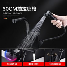 黑色廚房菜盆抽拉式水龍頭 多功能增壓噴槍機器人冷熱混水龍頭