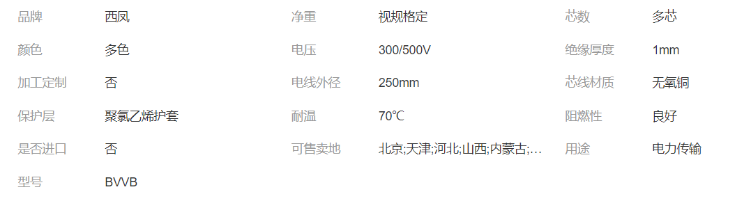 西鳳電纜BVVB ZR一BVVB銅芯聚氯乙烯絕緣電線