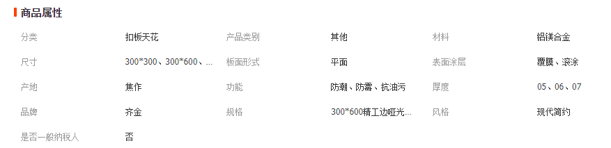 齊金集成吊頂300600鋁