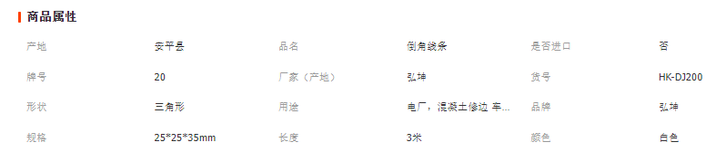 混凝土三角倒角線主要用于混凝土制品,外部用木模板固定。大梁,柱子,電纜溝上邊沿倒圓角。 一般火電廠或高壓電站基建大量使用。