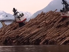 重達(dá)3000噸的木材卸載只需要把船傾斜,瞬間完成!